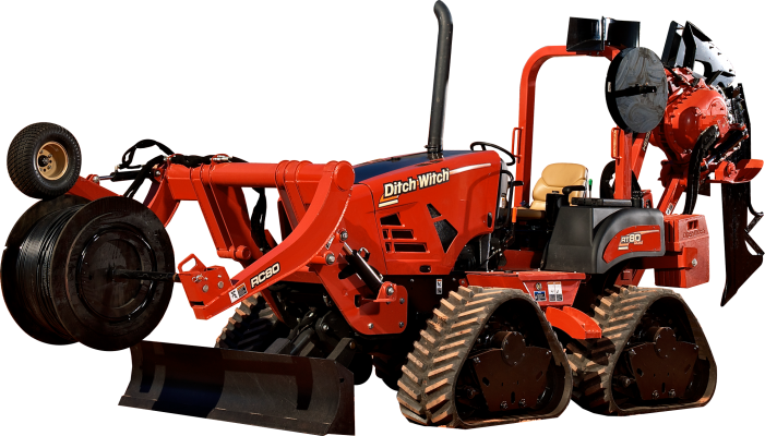 For short drops, long hauls and everything in between, the Ditch Witch RT80 Quad is one plow that does it all. This exceptionally powerful, durable and rugged machine is completely designed and manufactured by the Ditch Witch organization to provide outstanding traction and performance on rough and uneven terrain. The RT80 Quad’s three-speed, shift-on-the-fly ground drive—three speeds in forward, three in reverse—provides the power you need, when you need it, to tackle any jobsite. And the innovative Quad Track System pivots about the centerline of the axle, a design that provides exceptional machine stability in all conditions.